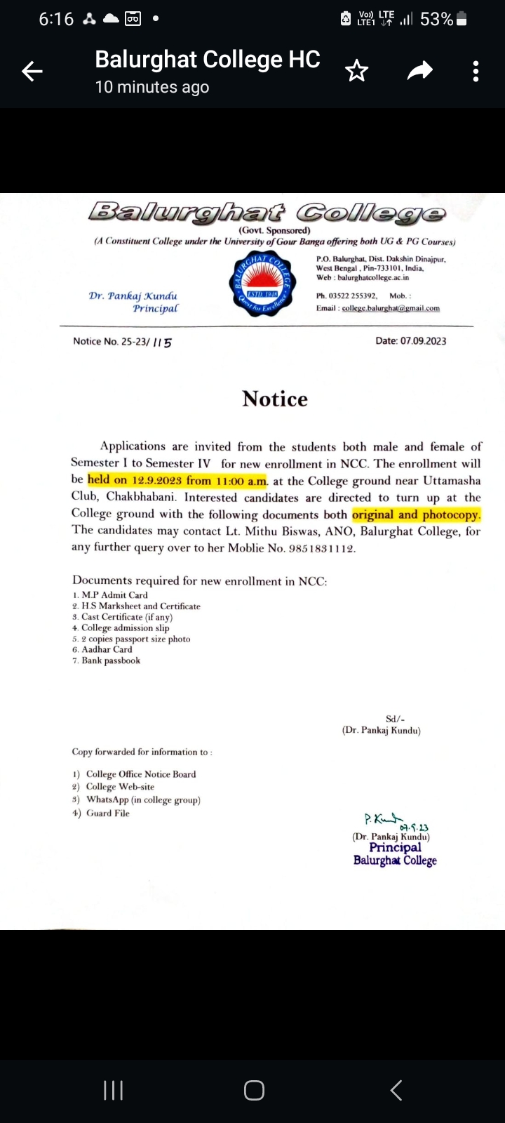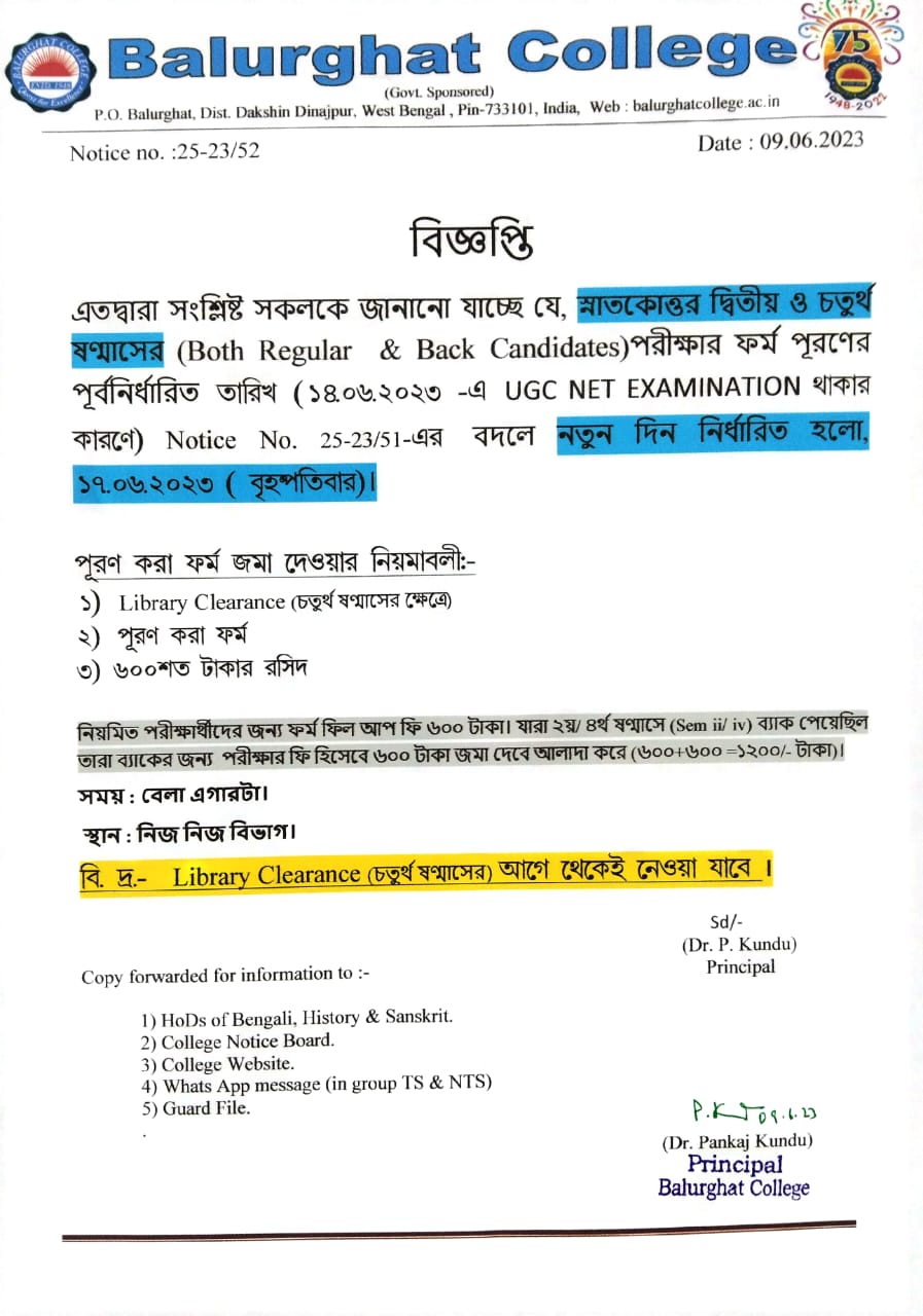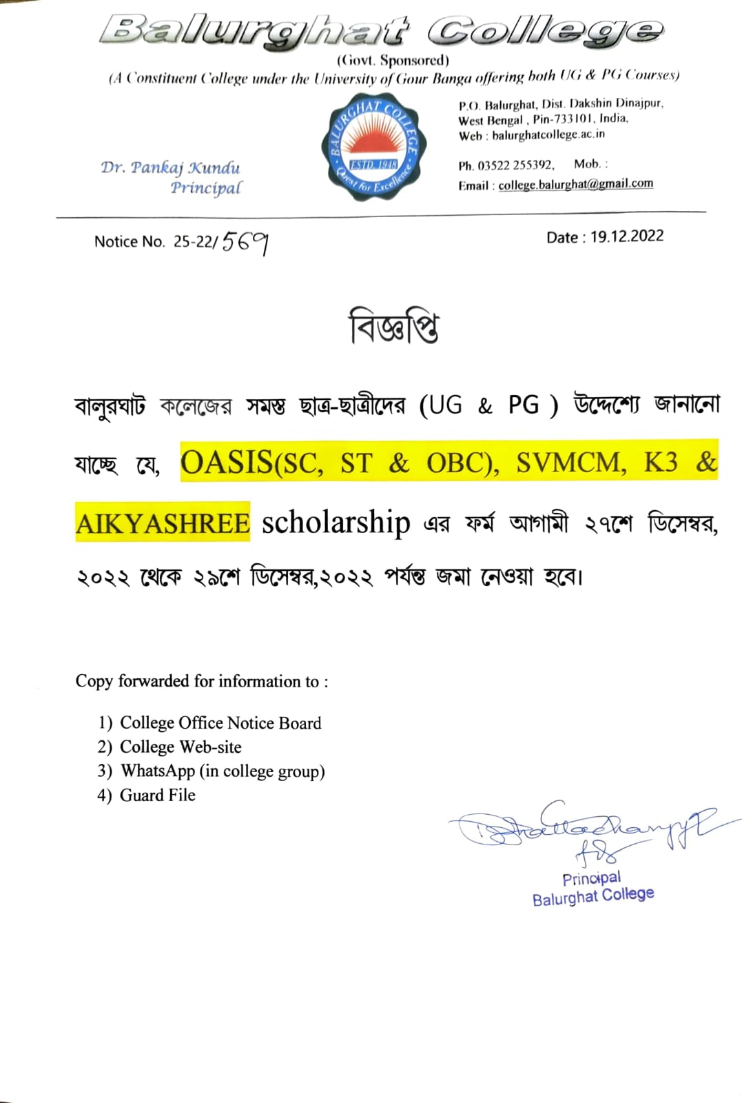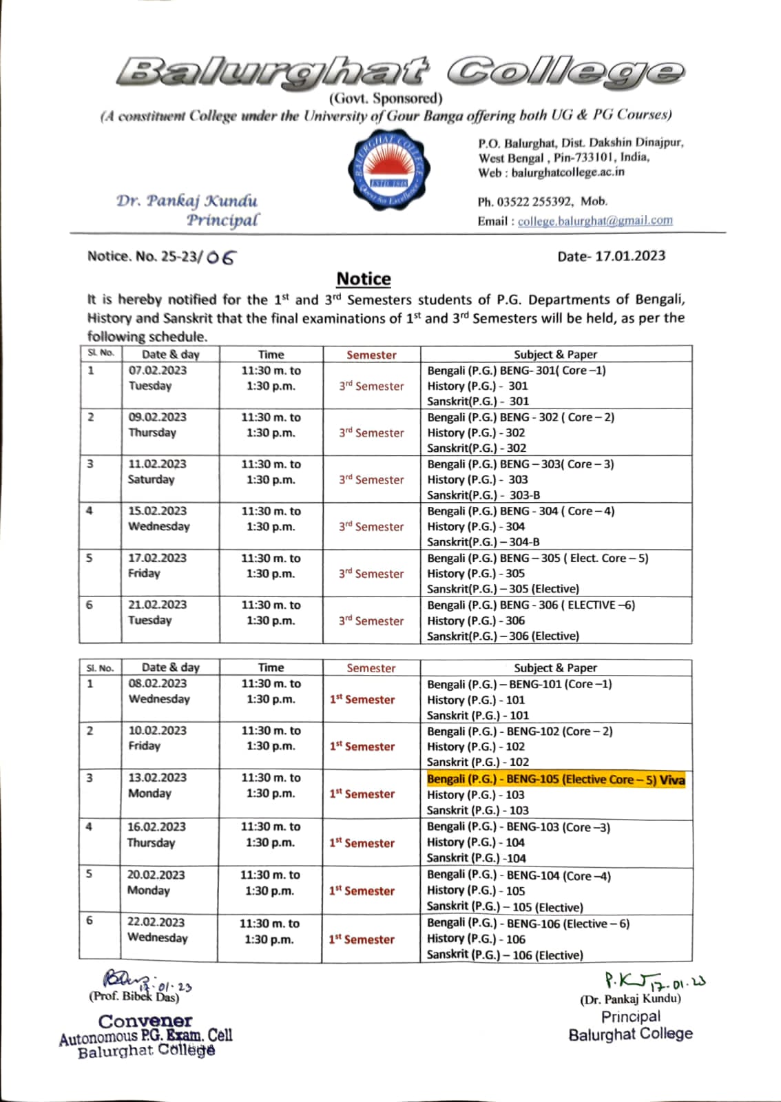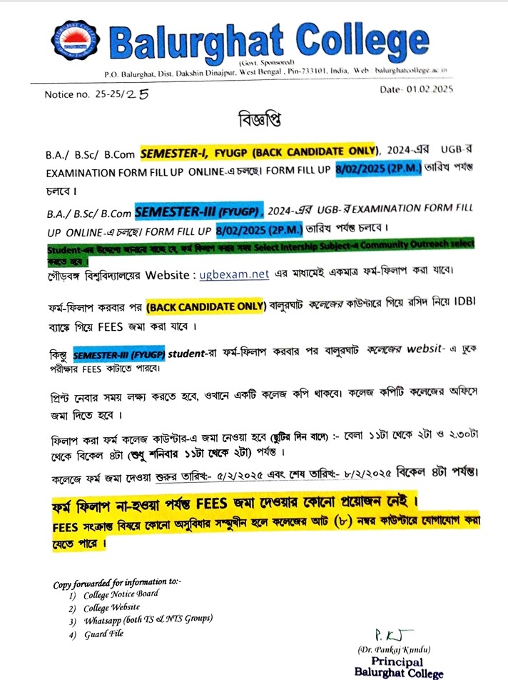 Balurghat College, established in 1948, is a provider of Bachelor and P.G. level education. The college is fully responsive to the local needs and ensure its contribution not only college level education but to the social and economic development of the region also. The college has established itself over the years as one of the leading colleges of the university. At present there are 16 undergraduates Honours programs, 3 Post graduates programs. More over 20 general subjects are offered to the students for opting any 3 subjects for pursuing degree program in general course in all 3 important streams: Arts, Science and Commerce. During the current session 2019-20 there are approximately 5500 students enrolled in different programs.